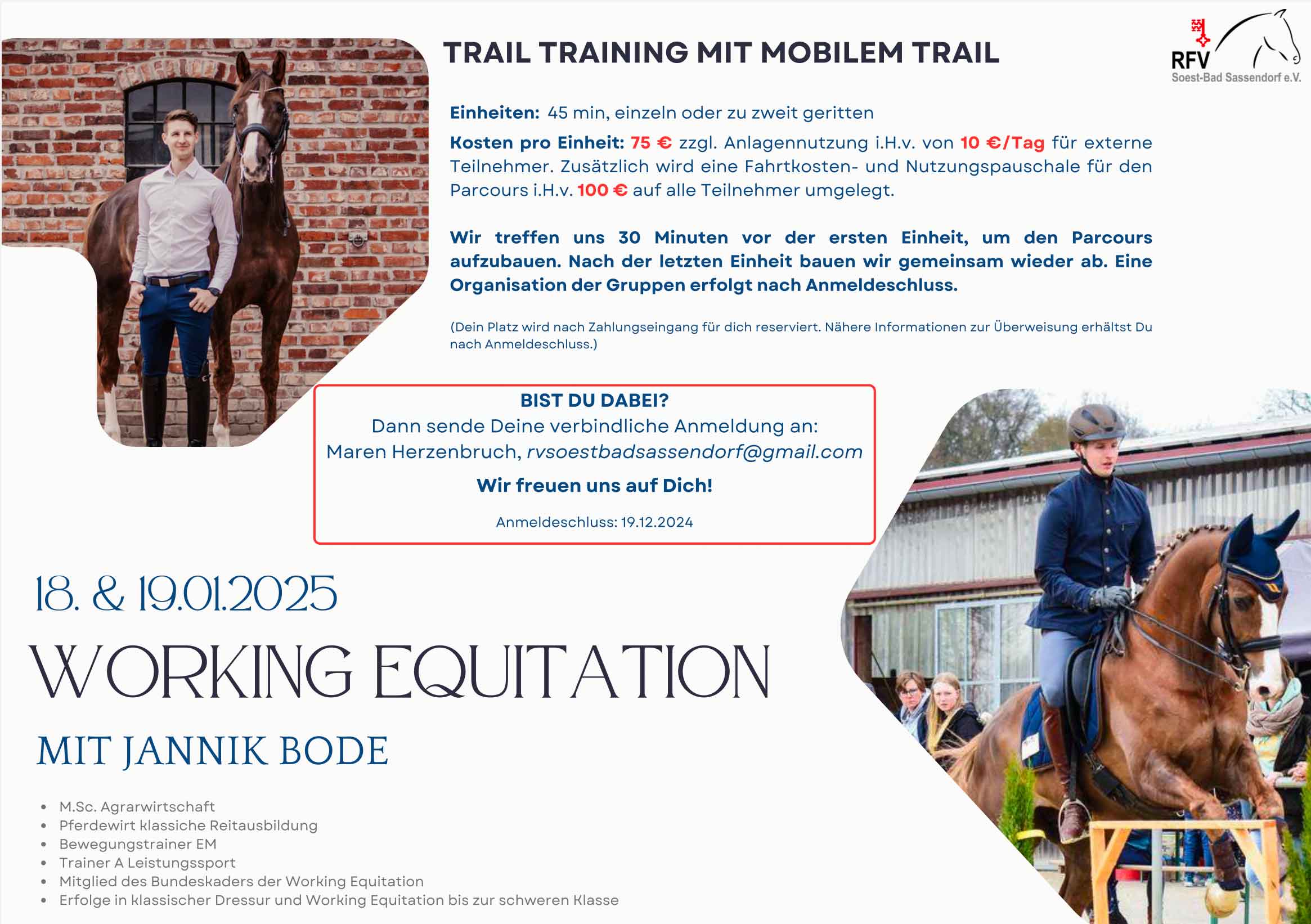 In den Wintermonaten bieten wir verschiedene interessante Lehrgänge bei renommierten Trainer:innen an. Hierbei achten wir auf eine große Vielfalt: von Bodenarbeit, über Dressur- und Springlehrgänge, bis hin zur Working Equitation.